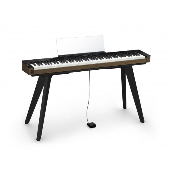 Privia PX-S6000 Smart Hybrid kombinerar Casios ledande teknologi och unika spelkänsla med ett exklusivt utseende för att ge pianot en ny nivå av harmoni med din livsstil och miljö. PX-S6000-modellen kommer i färgen black/walnut som ger pianot ett organiskt och lugnt utseende. Med sina 350 olika ljud, kraftfulla och avancerade högtalarsystem samt Casios nya Smart Hybrid Hammer Action Keyboard är PX-S6000 ett självklart val för det moderna Skandinaviska hemmet. Smart Hybrid Hammer Action KeyboardCasios nya Smart Hybrid Hammer Action Keyboard har en unik kombination av gran och syntetiskt material. Granen på insidan och texturen på ytan av tangenterna skapar den naturliga känslan av att spela på en riktigt flygel. Mekaniken kombineras med den senaste digitala styrtekniken för att hjälpa till att skapa den autentiska touchen av en flygel, men med den kompakta stilen och bekvämligheten hos ett digitalt instrument.De vita tangenterna har ett mer naturligt elfenbensliknande utseende och känsla, och de svarta tangenterna ett mer ebenholtsliknande utseende och textur. Detta maximerar spelbarheten samtidigt som det ger pianot en elegant finish som skapar en känsla av lyx.PX-S6000 har ett standard MicIn-jack med en egen gain-ratt, vilket innebär att om du ansluter en mikrofon kan din röst matas ut genom pianots högkvalitativa högtalare tillsammans med ljudet från ditt instrument. Du kan också spela in direkt i pianot och använda Hall Simulator/Reverb eller Mic Effects. Det finns 25 typer av inbyggda mikrofoneffekter, såsom en masteringseffekt som justerar dynamiken och kvaliteten på ljudet, eko och ännu fler unika effekter som kan lyfta din röst.PX-S6000 har Casios senaste högtalarsystem som garanterar en otrolig ljudupplevelse! Detta på grund av de fyra inbyggda högtalarna som är huserade i en struktur trä- och hartsmaterial. Denna kombination förstärker kraften och klarheten i ljudet och tar bort oönskade vibrationer. Piano Position-funktionen låter dig välja akustiska inställningar beroende på var pianot är placerat i rummet. Njut av friheten att verkligen uttrycka din musik vart du än önskar.PX-S6000 är dessutom helt kompatibel med Casios gratis app CASIO MUSIC SPACE. CASIO MUSIC SPACE är en digital musiklärare, konsertsimulator, musikspelare och mycket mera. En digital helhetslösning för att se, lyssna och spela musik. En app för alla som vill spela och lära sig spela. CASIO MUSIC SPACE är för nybörjare, dig som dammar av gamla färdigheter och alla som vill uppleva ett nytt sätt att spela på. CASIO MUSIC SPACE medföljer utan kostnad.Ladda ned appen här:https://web.casio.com/app/en/music_space/